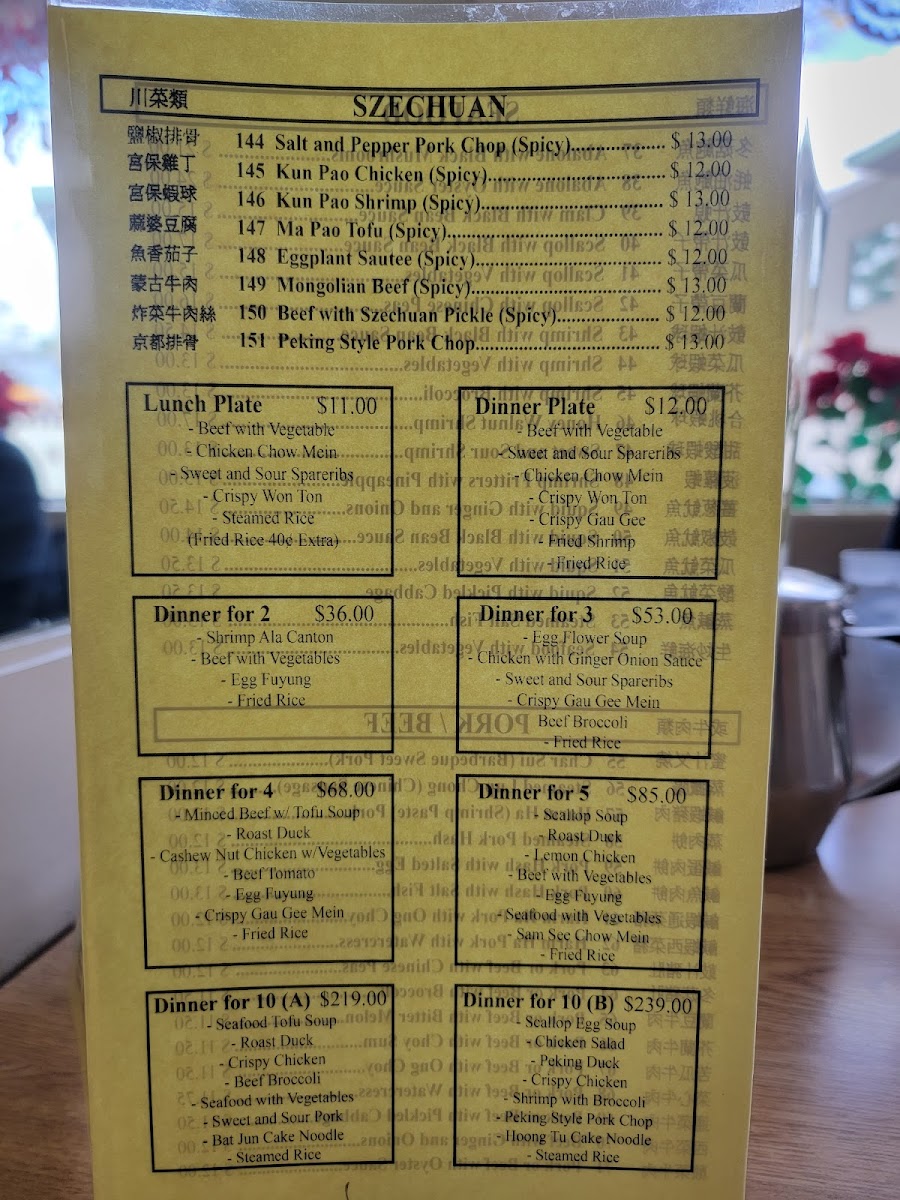 The restaurant boasts an expansive all-day menu that features a delightful array of seafood, pork, and tantalizing starters. Signature dishes like the Salt & Pepper Shrimp and Steamed Fish Fillet with Ginger & Green Onion are not to be missed. Each dish is prepared with care, ensuring robust flavors that dance on your palate. The Sweet & Sour Pork is a favorite among patrons, bringing a perfect balance of sweetness and tang that has kept customers returning over the years.